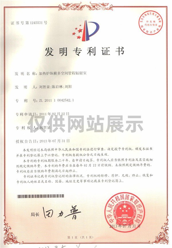加熱爐豎管內(nèi)空間臺式管程輻射室